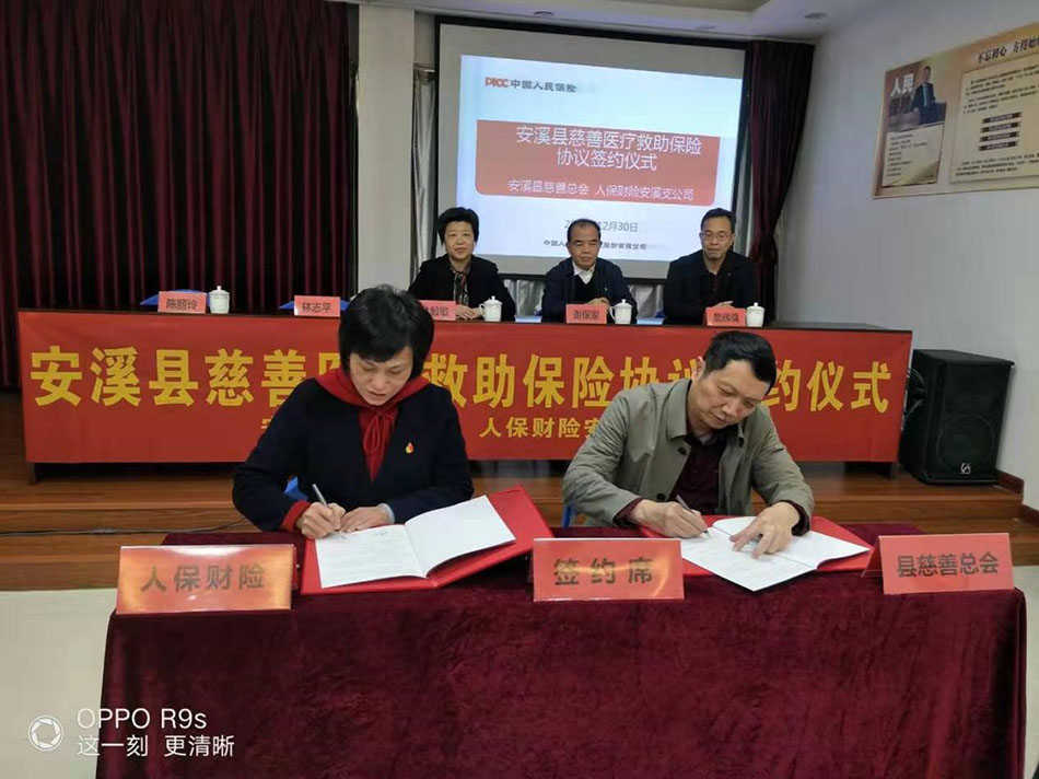 为创新慈善保障模式,丰富多层次医疗保障和救助体系,通过保险机制放大慈善资金的使用效能,帮助弱势群体缓解压力,度过突发困境,让有限的善款释放出更大的能量。经充分协商,安溪县慈善总会与中国人民财产保险股份有限公司安溪支公司决定结合各自的平台优势,开展深层次合作,达成安溪县慈善医疗救助保险协议,并于2020年12月30日举行签约仪式。安溪县人民政府林毅敏副县长,安溪县民政局詹辉儒副局长,安溪县慈善总会谢保家常务副会长、林志平秘书长,中国人民财产保险股份有限公司安溪支公司陈丽玲经理出席本次活动。