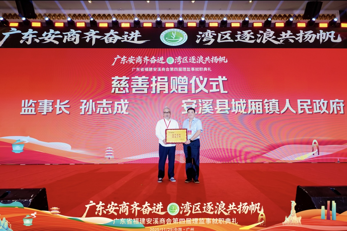 广东省福建安溪商会长期热心于社会公益活动,一直以来反哺家乡的乡村振兴工作,本次就职仪式上,商会会员企业又奉献爱心,捐赠善款820万元用于家乡的文化、道路、教育及乡村振兴等慈善公益项目。